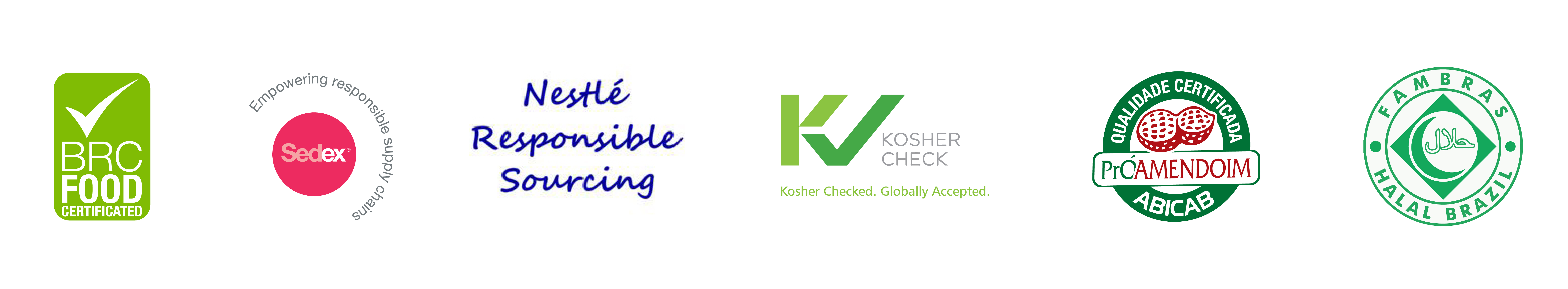 Utilizamos amendoim e castanhas altamente selecionadas, cujo padrão do fornecedor é atestado por diversas certificações: